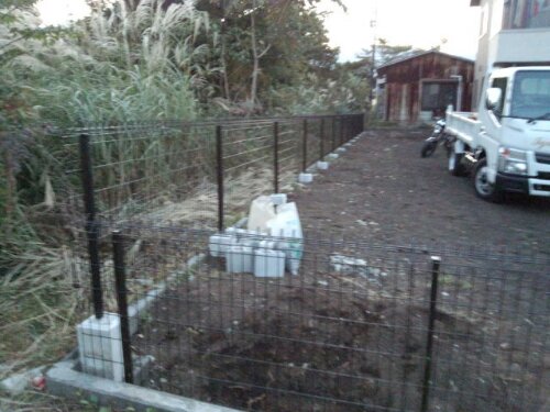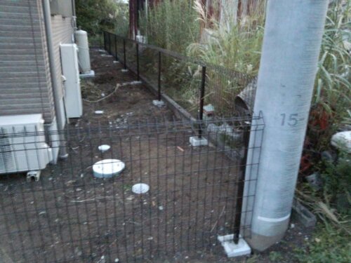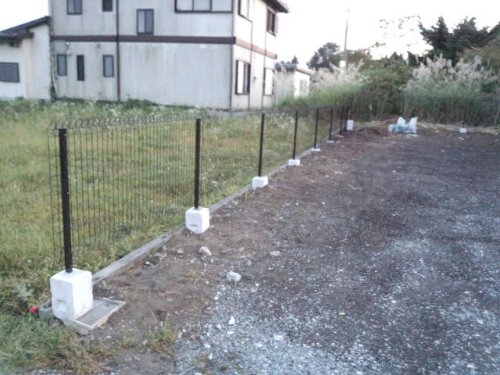 作業後。独立基礎を埋め込み、フェンスを設置しました。