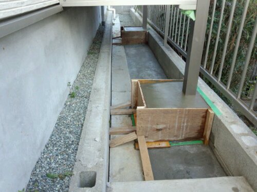 バルコニーの柱の基礎と土間をコンクリート打しました。