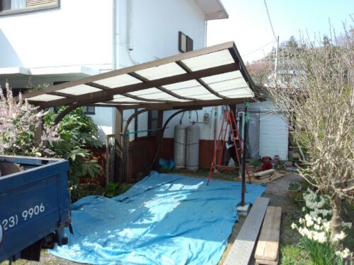 今年に入り、カーポート他を施工させていただきましたので公開しようと思います。 富士市にて施工。二台用,ハイルーフタイプになります。 駿東郡小山町にて施工。古いカーポートからの交換です。旧カーポート。雪の重み?か...部材が曲がっていました。 新カーポート。一台分の四本柱のタイプです。