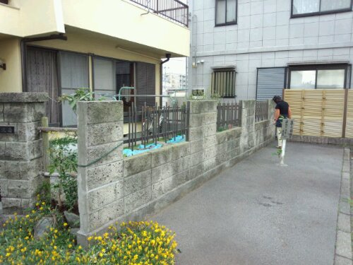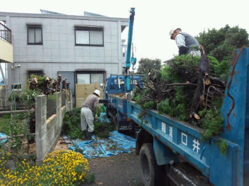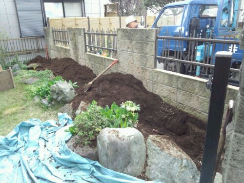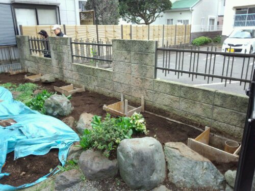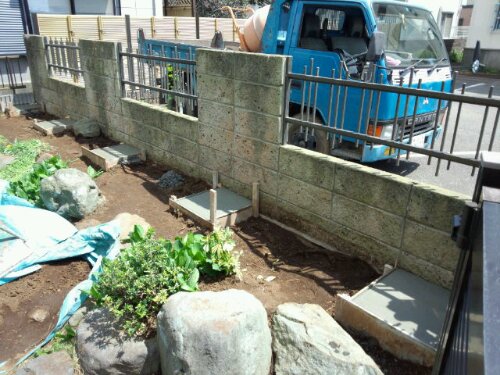 昨日から、沼津市WB邸にて疑似竹垣設置工事を始めました。 作業前。 疑似竹垣を設置する場所にカイズカイブキが植わっているため、それを伐採,伐根しました。 作業中。 伐採,伐根完了。 柱の基礎の型枠組をおこないました。 そして今日、基礎の生コン打をおこないました。 疑似竹垣の取り付けは、来週おこなっていきます。