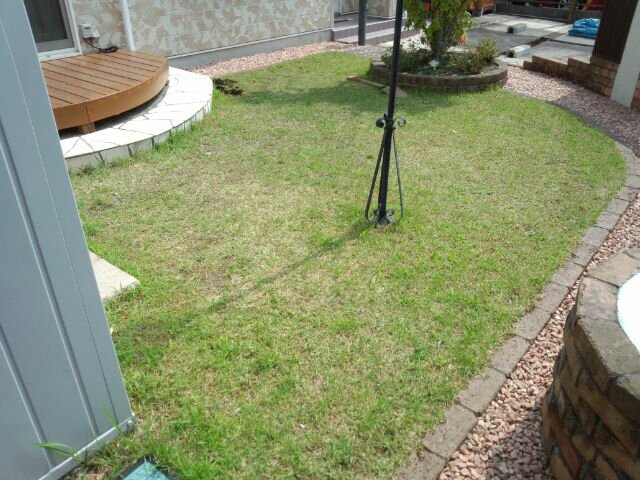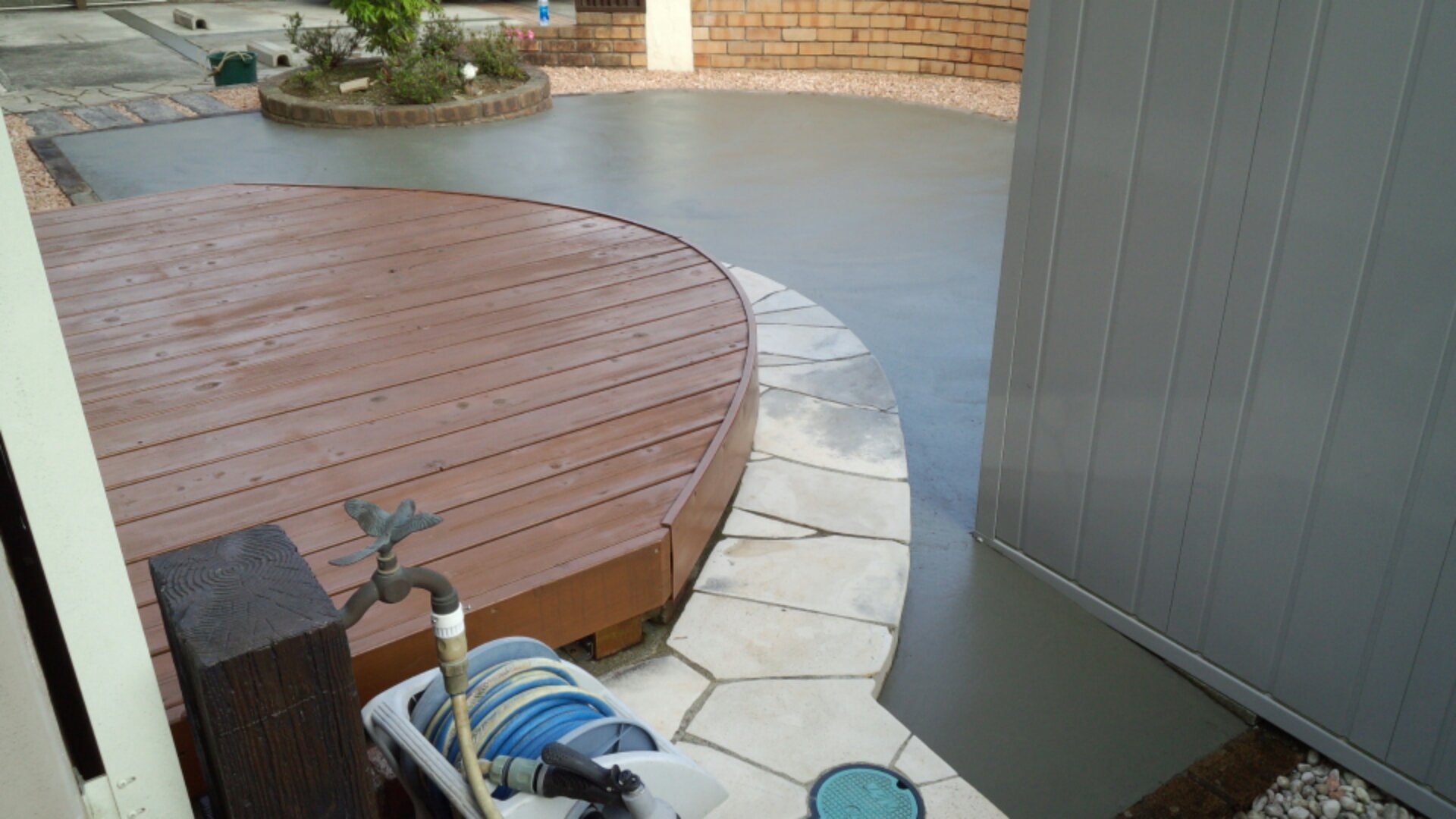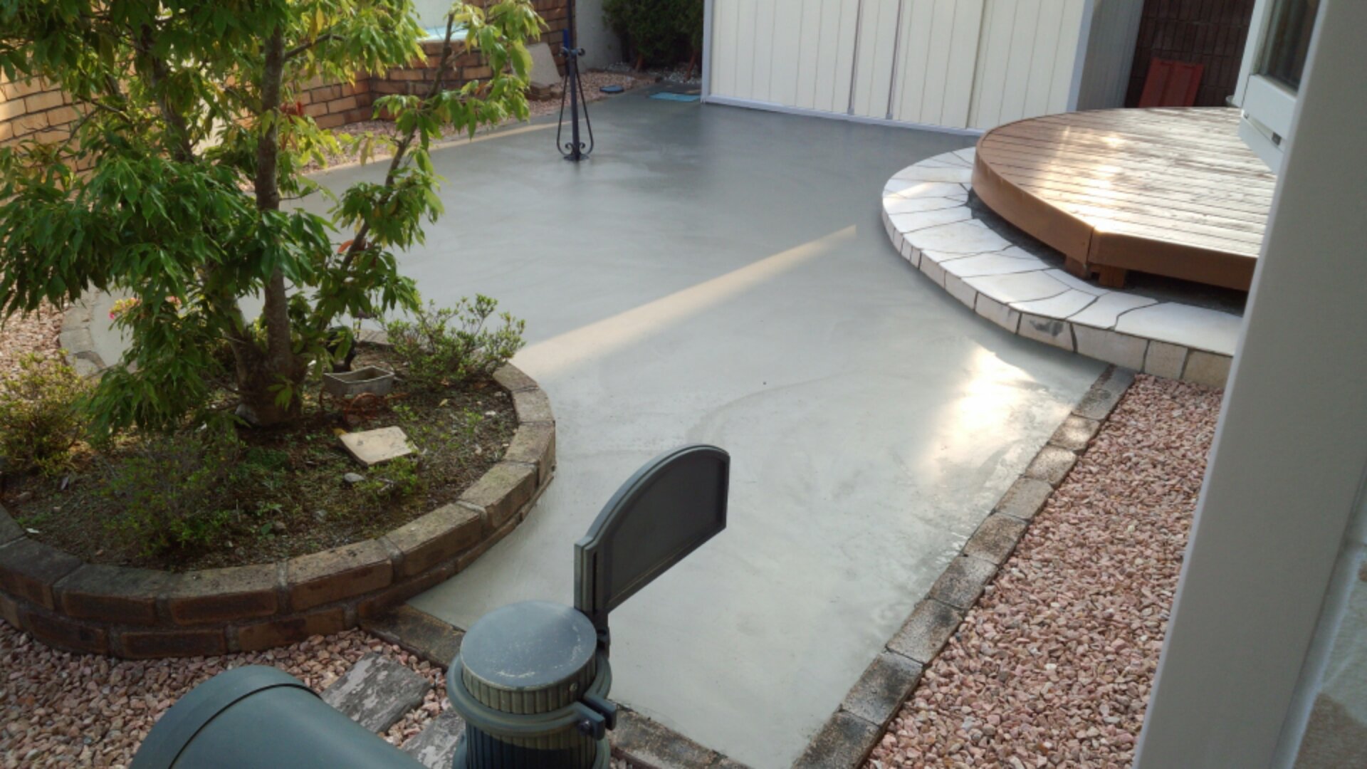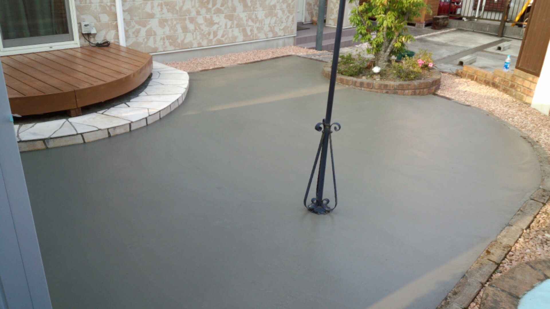 御殿場市にてコンクリート土間打をおこないました。 作業前。芝が張ってありました。 作業中。芝を剥がしていきます。 床堀をし、砕石敷き完了。 ワイヤーメッシュを敷きました。 生コンを流し、平にならしていきます。 完成。今回は、表面は金ゴテ仕上げでツヤツヤに仕上げました。