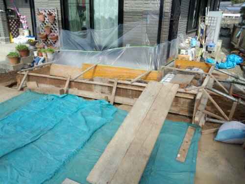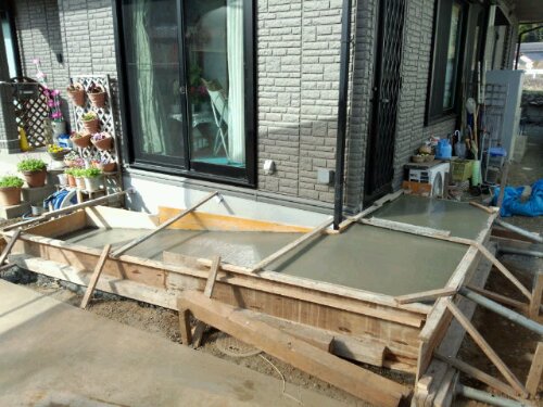 今日は、修善寺の現場にてスロープのコンクリート打をしました。