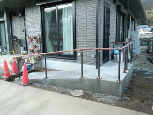 昨日は、修善寺のスロープ設置工事の現場にて、型枠ばらしと手摺りを取り付けました。