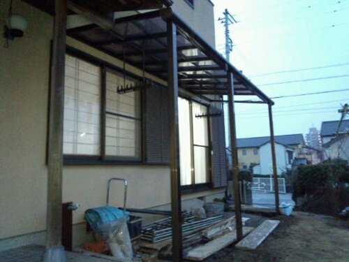 昨日、テラスがほぼ完成しました。(諸事情によりパネルが一部ついてませんが・・・)