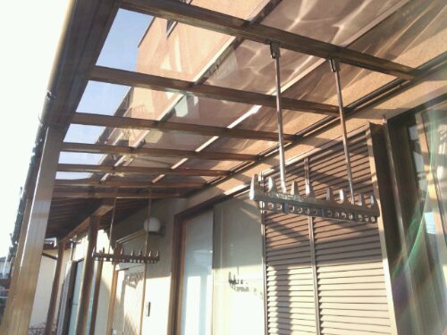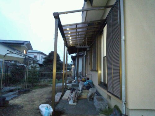 前回の記事にも掲載してある通り強風対策のため垂木が通常の倍ついているのと、さらに、もう一つの強風対策としてパネルの上に補強バーも取り付けました。こちらはオプションパーツとなります。