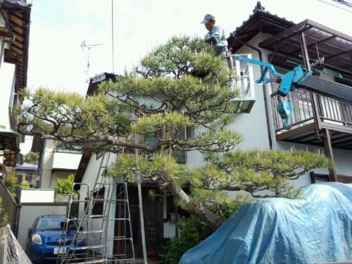 今日は、沼津市大岡YC邸にてマツの芽摘みをおこないました。