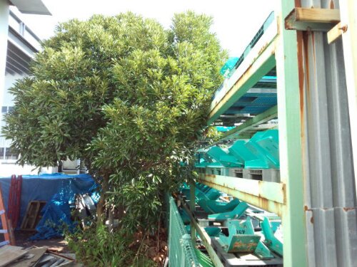 続いて、9/6にも支障枝除去の剪定をおこないました。現場は、沼津市の某運送会社様です。 作業前。マテバシイが隣の敷地まで張り出していました。 作業後。 全体的に枝をつめて透かし、かなりスッキリしました。