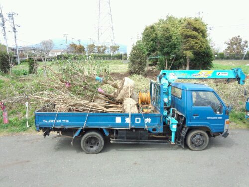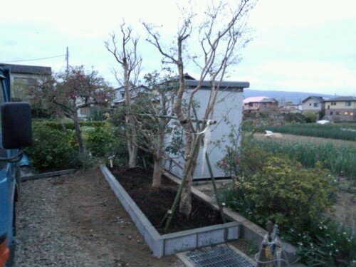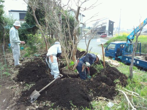 サルスベリやヒメシャラ,フジザクラ等計五本を掘り、根巻きをしました。