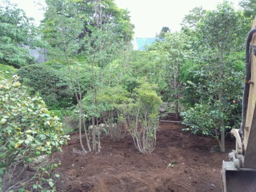 今週の月曜日と火曜日は、箱根仙石原の現場にて植栽の続きをおこないました。 月曜日の植栽状況。 火曜日の植栽状況。 ユンボで客土とウッドチップを混ぜながら、モミジ,ソヨゴ,ヤマボウシ,ツツジなどを植栽しました。斜面には芝も張りました。
