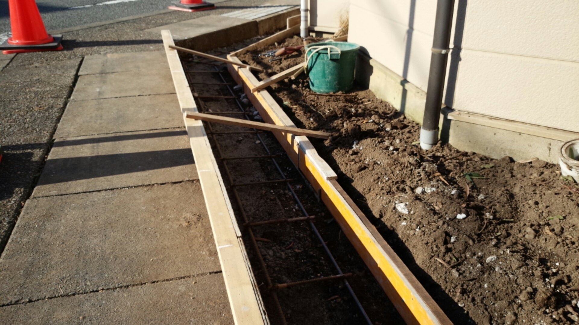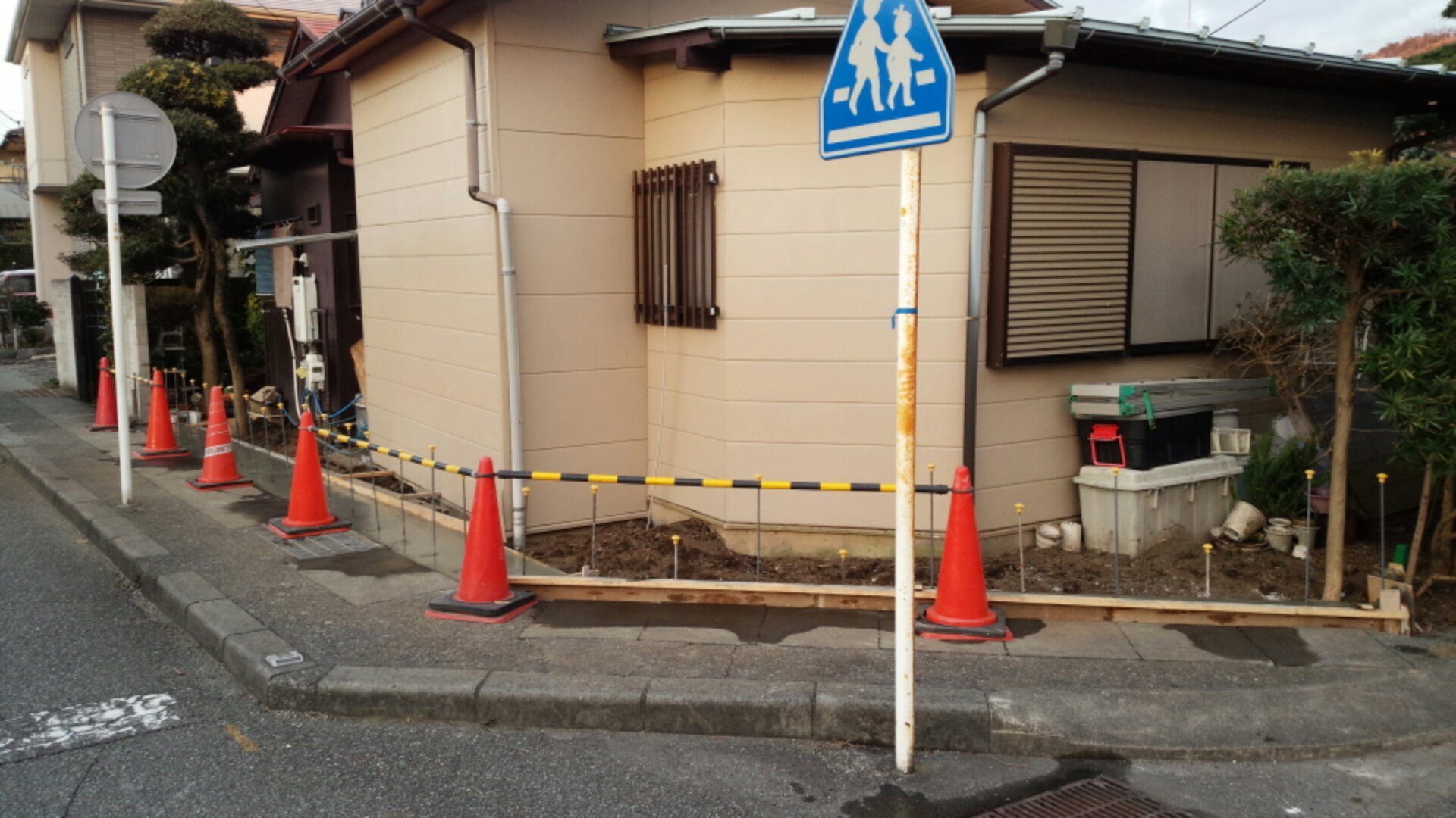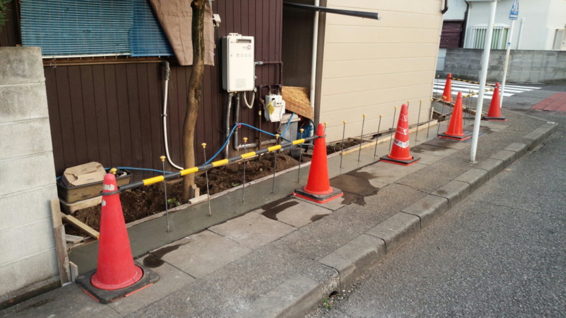 作業は、これで終わりではなく生垣があった箇所にブロック&フェンスを施工します。