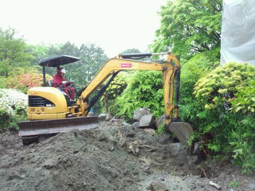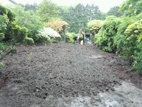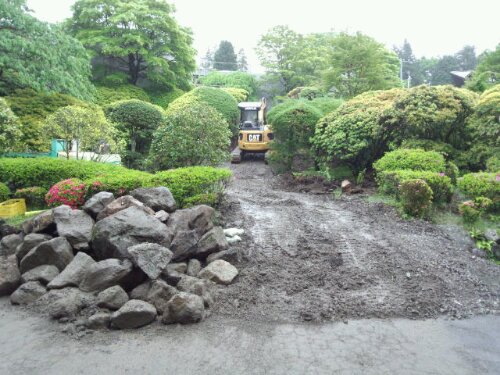今日から箱根仙石原の現場に入りました。増築工事のため解体したお庭の『リフォーム工事』です。