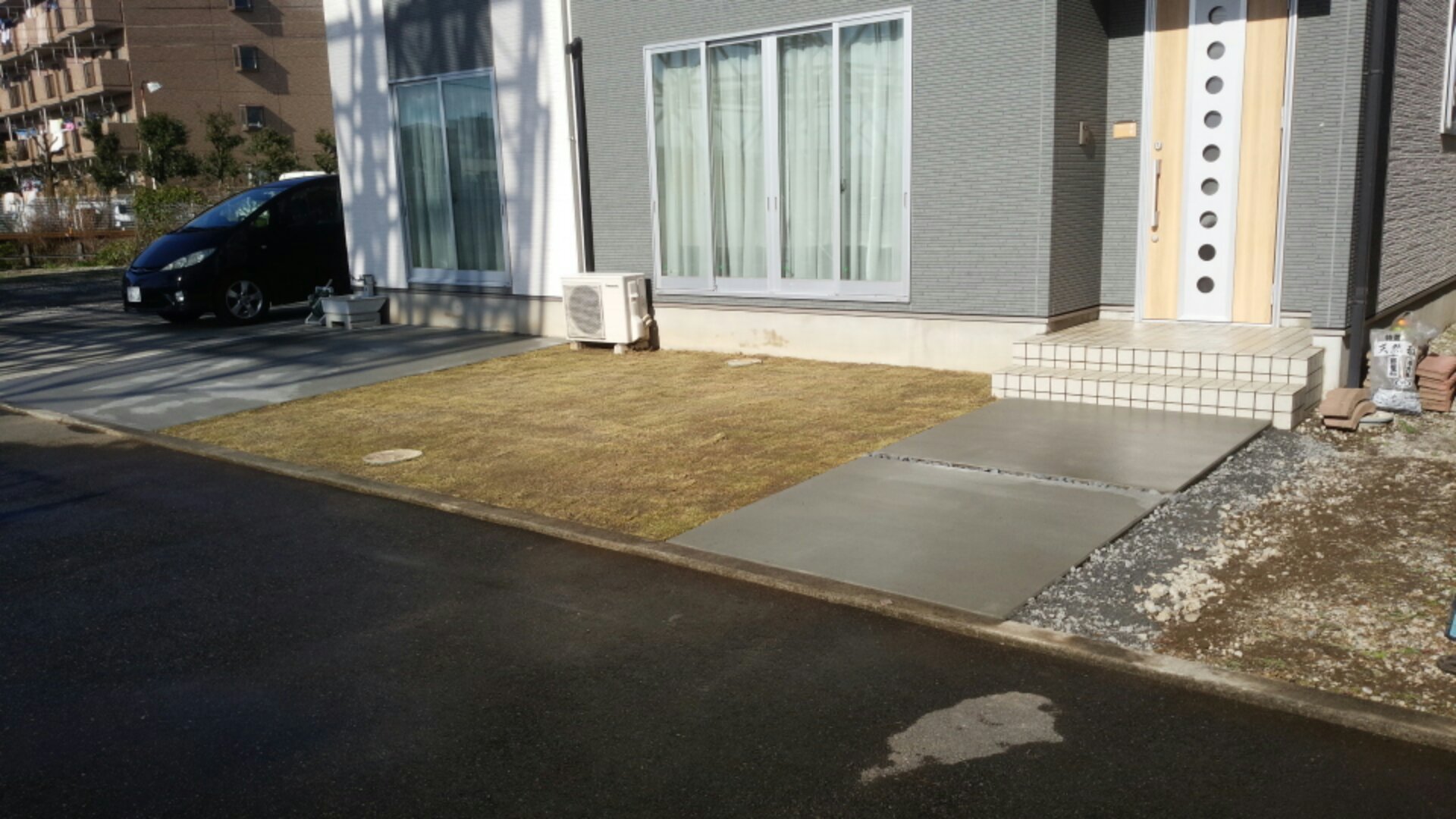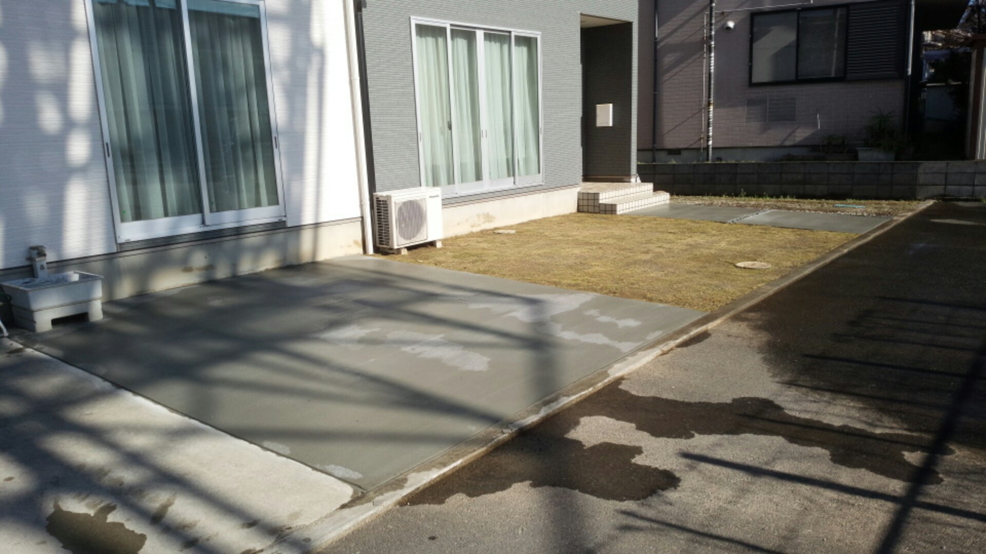 沼津市にて、芝張りと土間コンクリート打をおこないました。