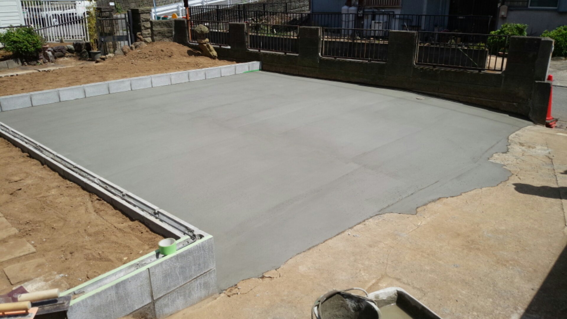 先日、三島市にてお庭を解体しての土間コンクリート打ちをおこないました。 ワイヤーメッシュも敷き、コンクリート打準備万端! 刷毛引き仕上げにて完成! 駐車場を拡張し、車二台分のスペースが確保されました。お庭→駐車場は、近年一番おこなう工事じゃないかなと思います。こうゆう中でも、少しでもお庭が残せるご提案が出来ればと思います。