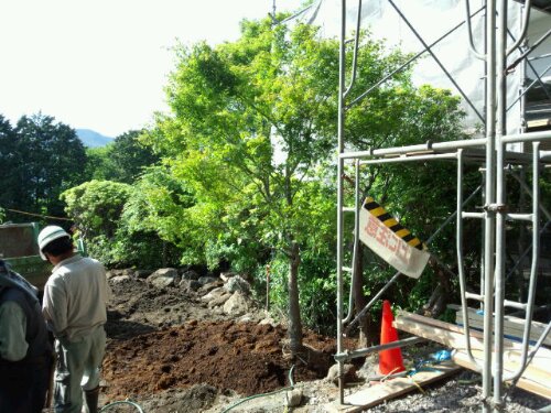 今週の金曜日は、箱根仙石原の現場にて土留石積とモミジの植栽をおこないました。