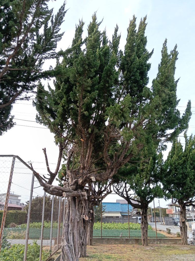 ↓本日学校グランド脇のカイヅカイブキ。グランド砂の飛散防止にも一役かっていそう。