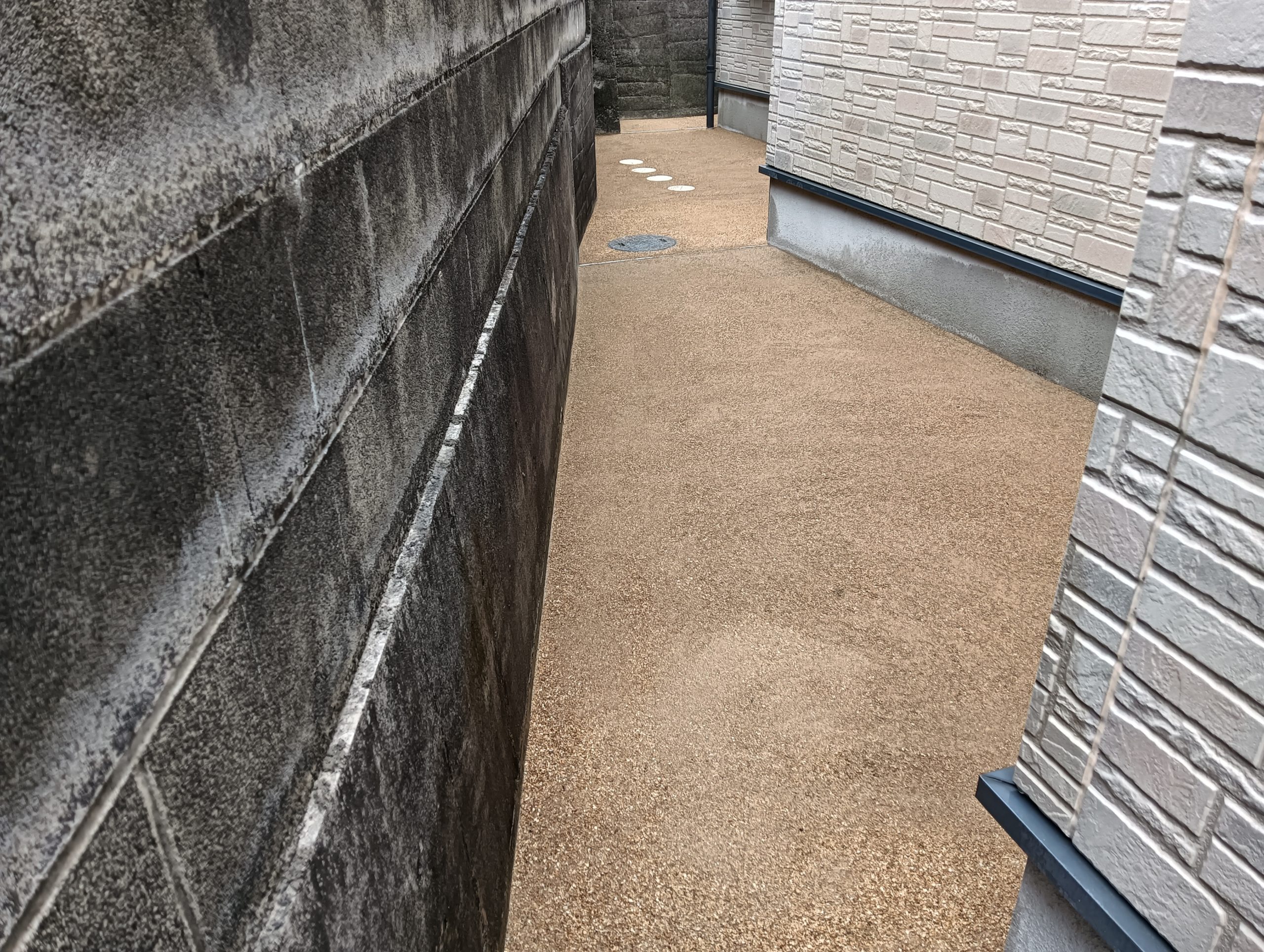 散水や転圧を繰り返すため、理想は左右から作業できればベストなのですが、見ての通り、左右は壁のため、どうしても往復するしかありません。