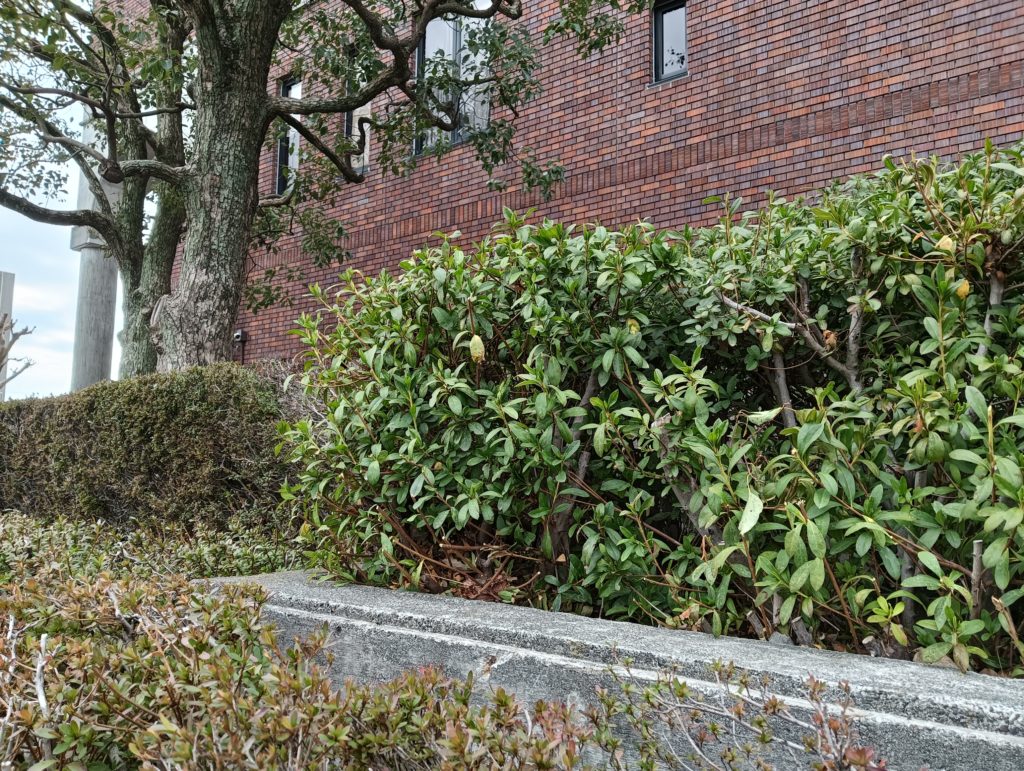 ツツジ類がメインの植込みですが、実はこの植込みは、夏に丸坊主に強剪定をしていました。