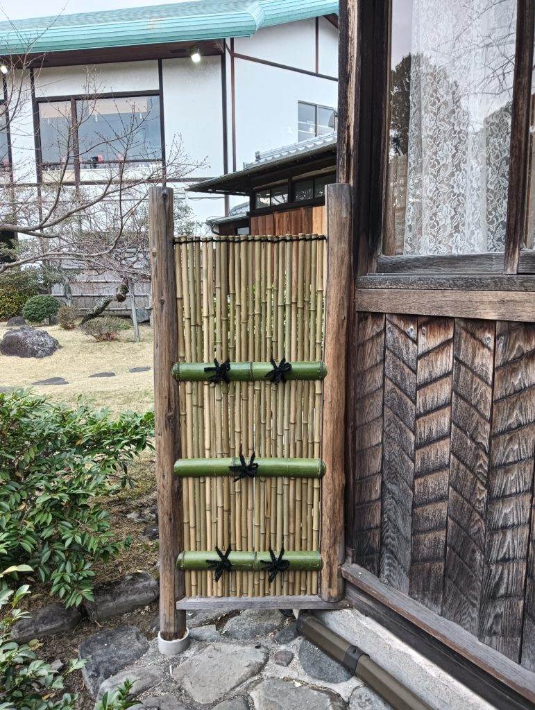 向こう側を隠すための竹垣ですが、遮る目的の垣根が、景色の1つになるのが、竹垣の魅力だと思います。