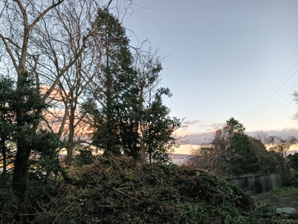 日頃、材料などを置いてある場所ですが、少し前に拡張して、ずいぶん広くなったはずなのですが、年末の手入れシーズンに、産廃業者の受け入れストップのアクシデントがあったりで、あれこれ置いたままになっていたので、片づけを兼ねて、使いやすく整備をすることになりました。