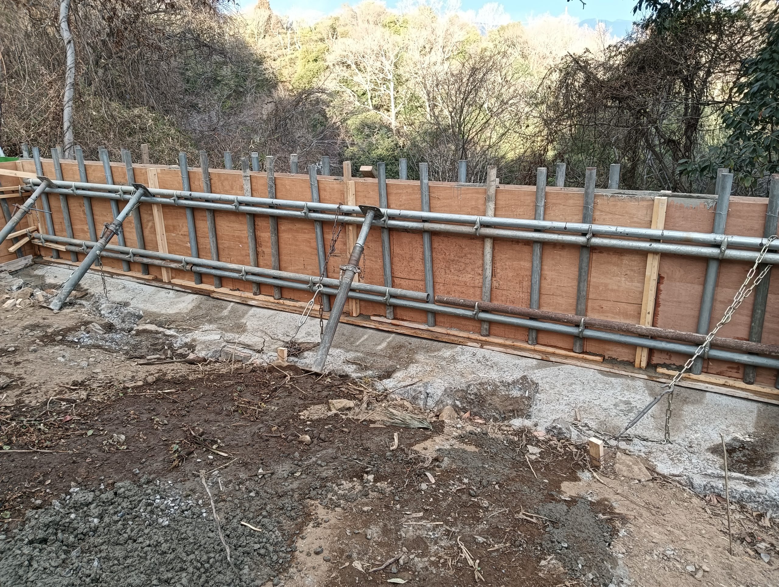 以前から擁壁の計画はありましたが、数日前から土木の職人さんにお願いして、型枠の施工をしてもらっていました。