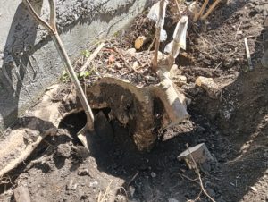本日は富士市にて、外構工事に伴う作業を行ないました。 昨日からの現場で、砂利敷きや芝生の箇所を、コンクリート土間や真砂土舗装、いわゆる、固まる土にやり変える工事です。 昨日から不要な木や石の撤去をしていますが、写真は1番 […]
